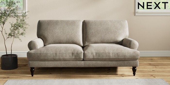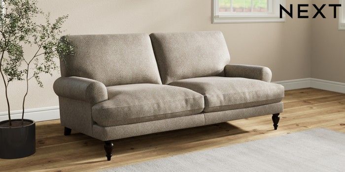 7.2.10 Erin Deep Relaxed Sit 3 Seater Small Sofa Cotswold Chenille Mid Mink Brown High Classic Turned - Dark | Made Click here to use our website with more accessibility support, for example screen readers