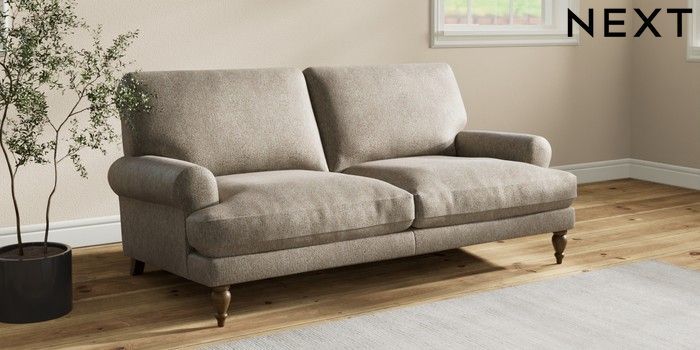 7.2.10 Erin Deep Relaxed Sit 3 Seater Small Sofa Cotswold Chenille Mid Mink Brown High Classic Turned - Mid | Made Click here to use our website with more accessibility support, for example screen readers