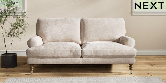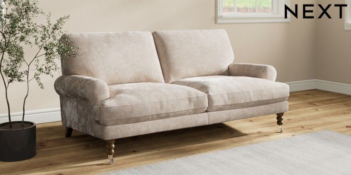 7.2.10 Erin Deep Relaxed Sit 3 Seater Small Sofa Distressed Velour Mid Natural High Classic Turned Chrome Castor - Mid | Made Click here to use our website with more accessibility support, for example screen readers