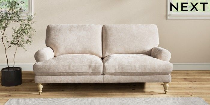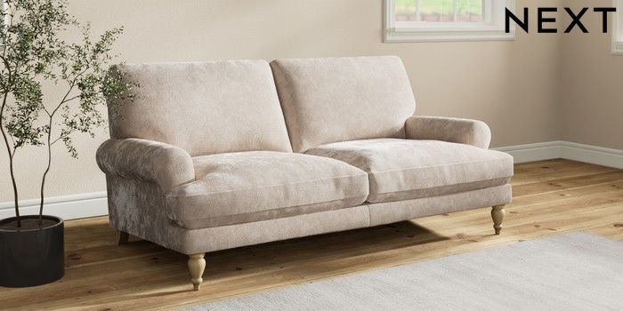 7.2.10 Erin Deep Relaxed Sit 3 Seater Small Sofa Distressed Velour Mid Natural High Classic Turned - Light | Made Click here to use our website with more accessibility support, for example screen readers