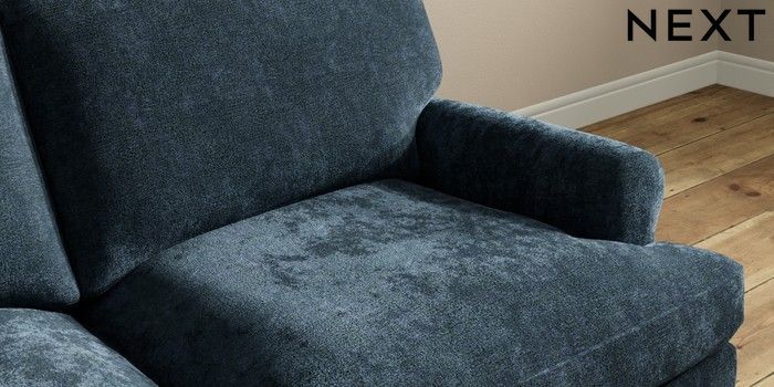 7.2.10 Erin Deep Relaxed Sit 3 Seater Small Sofa Distressed Velour Midnight Blue High Classic Turned Chrome Castor - Light | Made Click here to use our website with more accessibility support, for example screen readers