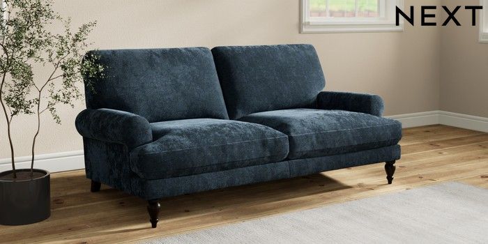 7.2.10 Erin Deep Relaxed Sit 3 Seater Small Sofa Distressed Velour Midnight Blue High Classic Turned - Dark | Made Click here to use our website with more accessibility support, for example screen readers