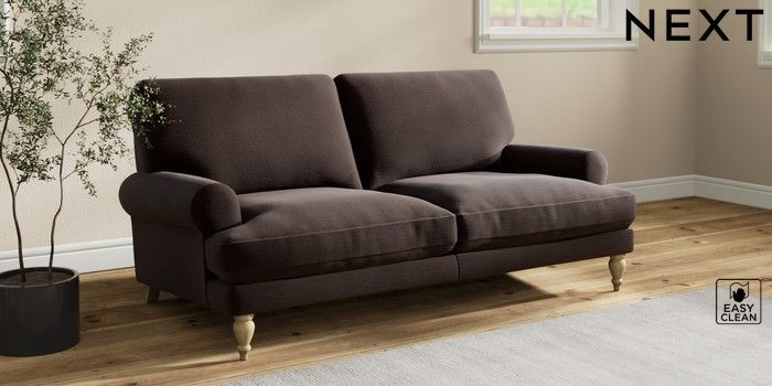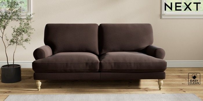 7.2.10 Erin Deep Relaxed Sit 3 Seater Small Sofa Fine Chenille Easy Clean Chocolate Brown High Classic Turned - Light | Made Click here to use our website with more accessibility support, for example screen readers
