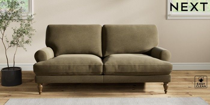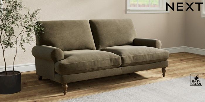 7.2.10 Erin Deep Relaxed Sit 3 Seater Small Sofa Fine Chenille Easy Clean Dark Moss Green High Classic Turned - Mid | Made Click here to use our website with more accessibility support, for example screen readers