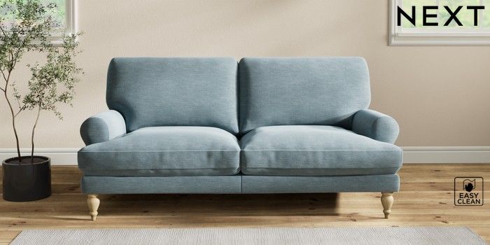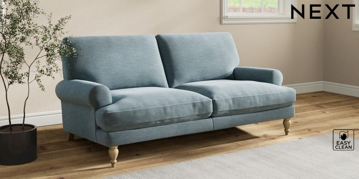 7.2.10 Erin Deep Relaxed Sit 3 Seater Small Sofa Fine Chenille Easy Clean Mid Blue High Classic Turned - Light | Made Click here to use our website with more accessibility support, for example screen readers