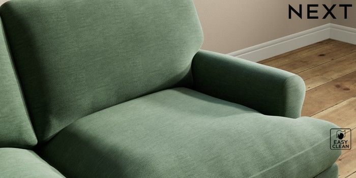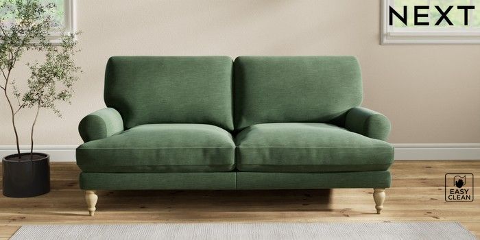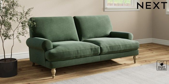 7.2.10 Erin Deep Relaxed Sit 3 Seater Small Sofa Fine Chenille Easy Clean Mid Khaki Green High Classic Turned - Light | Made Click here to use our website with more accessibility support, for example screen readers