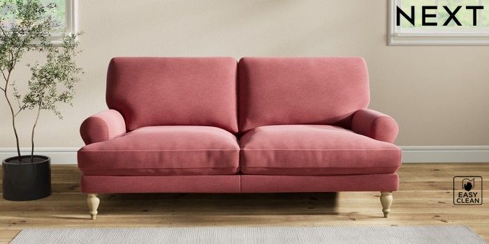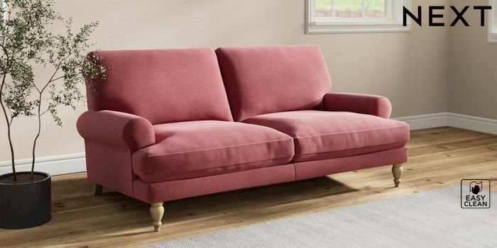 7.2.10 Erin Deep Relaxed Sit 3 Seater Small Sofa Fine Chenille Easy Clean Mid Pink High Classic Turned - Light | Made Click here to use our website with more accessibility support, for example screen readers