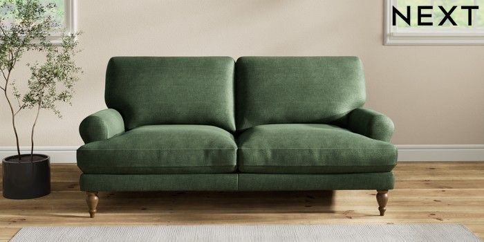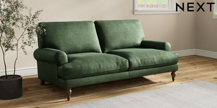 7.2.10 Erin Deep Relaxed Sit 3 Seater Small Sofa Luxe Chenille Dark Green High Classic Turned - Mid | Made Click here to use our website with more accessibility support, for example screen readers