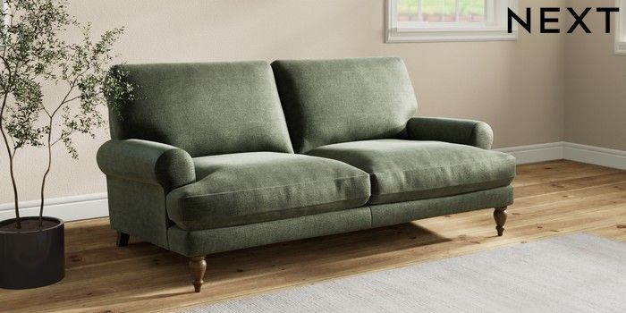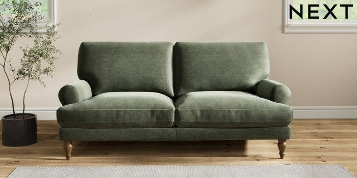 7.2.10 Erin Deep Relaxed Sit 3 Seater Small Sofa Luxe Chenille Mid Green High Classic Turned - Mid | Made Click here to use our website with more accessibility support, for example screen readers