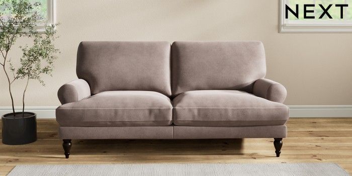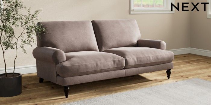 7.2.10 Erin Deep Relaxed Sit 3 Seater Small Sofa Luxe Chenille Mink Brown High Classic Turned - Dark | Made Click here to use our website with more accessibility support, for example screen readers