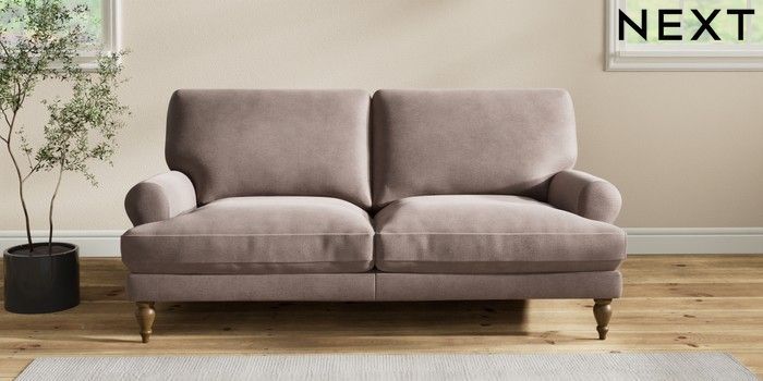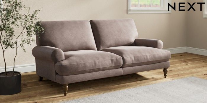 7.2.10 Erin Deep Relaxed Sit 3 Seater Small Sofa Luxe Chenille Mink Brown High Classic Turned - Mid | Made Click here to use our website with more accessibility support, for example screen readers