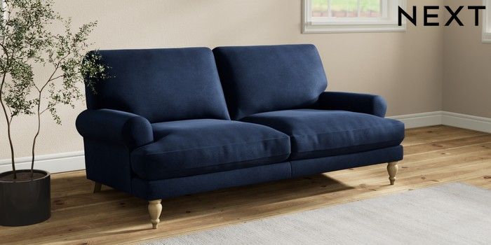 7.2.10 Erin Deep Relaxed Sit 3 Seater Small Sofa Luxe Chenille Navy Blue High Classic Turned - Light | Made Click here to use our website with more accessibility support, for example screen readers
