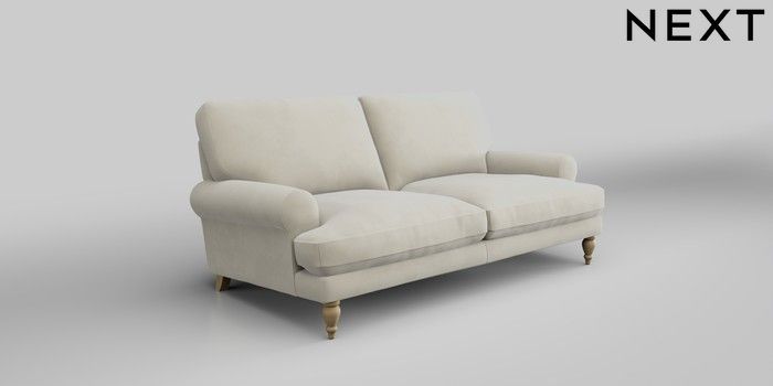 7.2.10 Erin Deep Relaxed Sit 3 Seater Small Sofa Luxe Chenille Oyster High Classic Turned - Light | Made Click here to use our website with more accessibility support, for example screen readers
