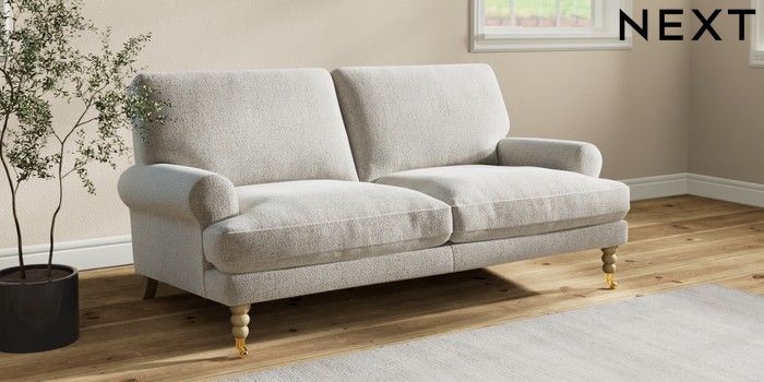 7.2.10 Erin Deep Relaxed Sit 3 Seater Small Sofa Multi Weave Light Blue High Classic Turned Brass Castor - Light | Made Click here to use our website with more accessibility support, for example screen readers