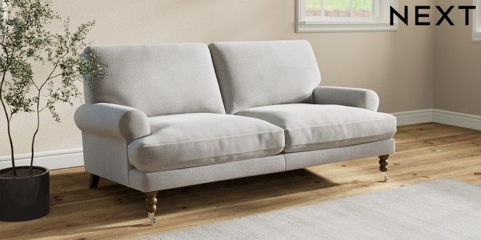 7.2.10 Erin Deep Relaxed Sit 3 Seater Small Sofa Natural Mix Light Grey High Classic Turned Chrome Castor - Mid | Made Click here to use our website with more accessibility support, for example screen readers