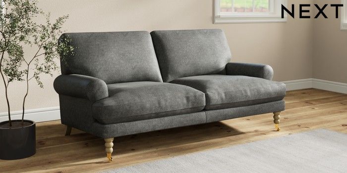 7.2.10 Erin Deep Relaxed Sit 3 Seater Small Sofa Plush Chenille Dark Grey High Classic Turned Brass Castor - Light | Made Click here to use our website with more accessibility support, for example screen readers