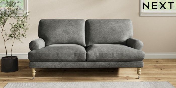 7.2.10 Erin Deep Relaxed Sit 3 Seater Small Sofa Plush Chenille Dark Grey High Classic Turned Chrome Castor - Light | Made Click here to use our website with more accessibility support, for example screen readers