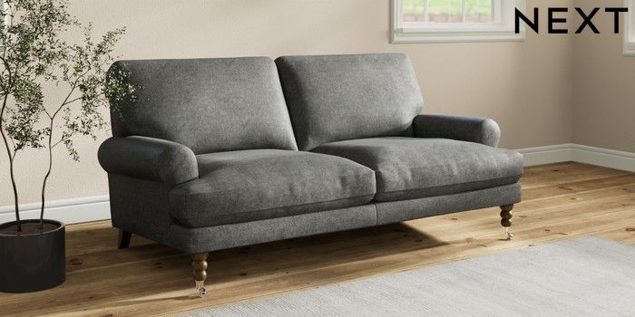7.2.10 Erin Deep Relaxed Sit 3 Seater Small Sofa Plush Chenille Dark Grey High Classic Turned Chrome Castor - Mid | Made Click here to use our website with more accessibility support, for example screen readers