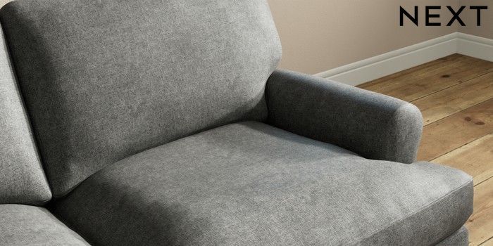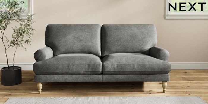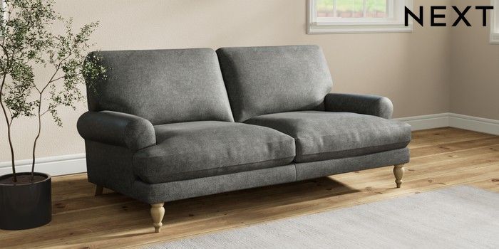 7.2.10 Erin Deep Relaxed Sit 3 Seater Small Sofa Plush Chenille Dark Grey High Classic Turned - Light | Made Click here to use our website with more accessibility support, for example screen readers