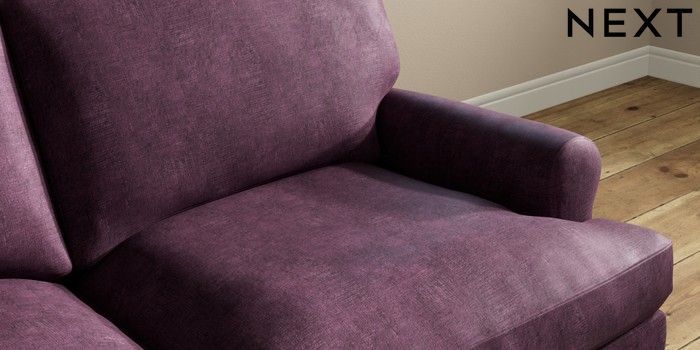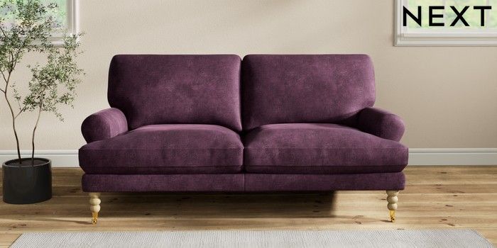 7.2.10 Erin Deep Relaxed Sit 3 Seater Small Sofa Plush Chenille Dark Plum Purple High Classic Turned Brass Castor - Light | Made Click here to use our website with more accessibility support, for example screen readers