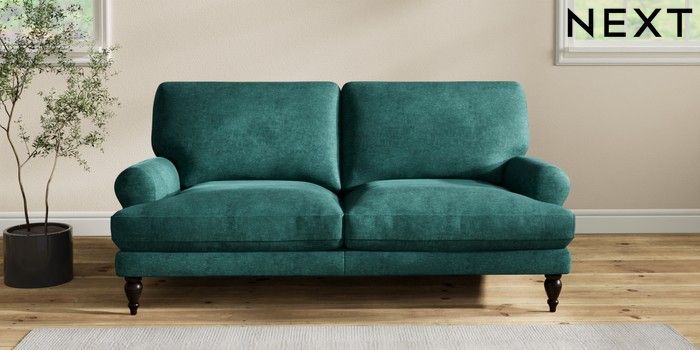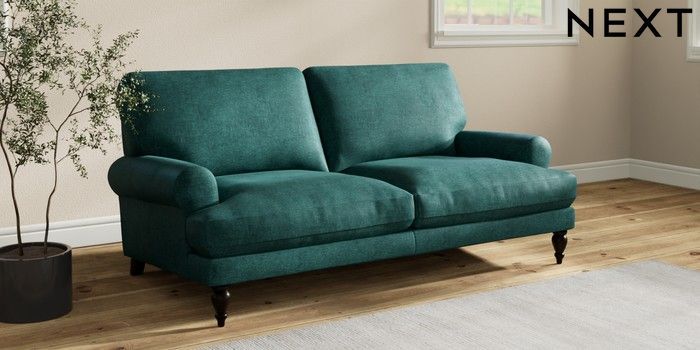 7.2.10 Erin Deep Relaxed Sit 3 Seater Small Sofa Plush Chenille Dark Teal Green High Classic Turned - Dark | Made Click here to use our website with more accessibility support, for example screen readers