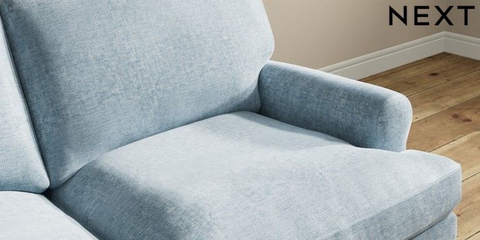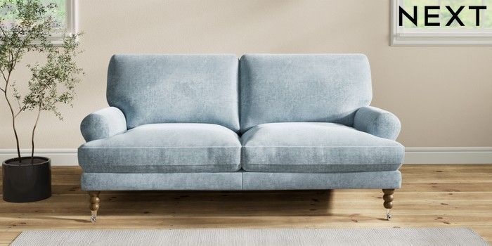 7.2.10 Erin Deep Relaxed Sit 3 Seater Small Sofa Plush Chenille Light Blue High Classic Turned Chrome Castor - Mid | Made Click here to use our website with more accessibility support, for example screen readers