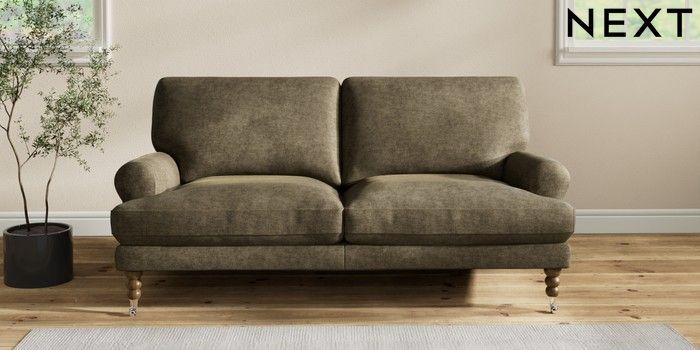 7.2.10 Erin Deep Relaxed Sit 3 Seater Small Sofa Plush Chenille Moss Green High Classic Turned Chrome Castor - Mid | Made Click here to use our website with more accessibility support, for example screen readers
