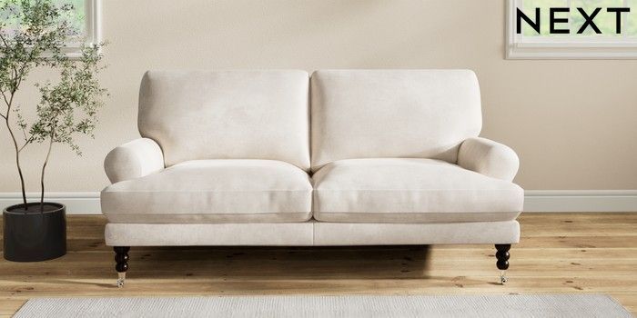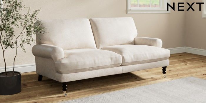 7.2.10 Erin Deep Relaxed Sit 3 Seater Small Sofa Plush Chenille Oyster High Classic Turned Chrome Castor - Dark | Made Click here to use our website with more accessibility support, for example screen readers