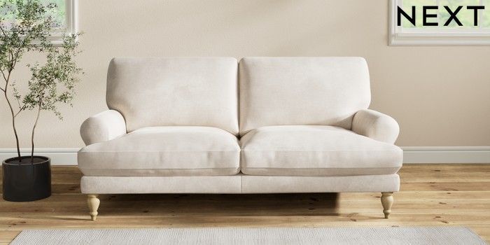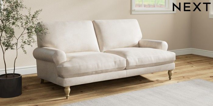 7.2.10 Erin Deep Relaxed Sit 3 Seater Small Sofa Plush Chenille Oyster High Classic Turned - Light | Made Click here to use our website with more accessibility support, for example screen readers