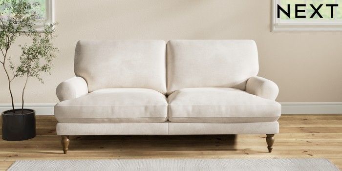 7.2.10 Erin Deep Relaxed Sit 3 Seater Small Sofa Plush Chenille Oyster High Classic Turned - Mid | Made Click here to use our website with more accessibility support, for example screen readers