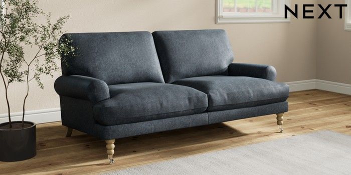 7.2.10 Erin Deep Relaxed Sit 3 Seater Small Sofa Plush Chenille Slate Blue High Classic Turned Chrome Castor - Light | Made Click here to use our website with more accessibility support, for example screen readers