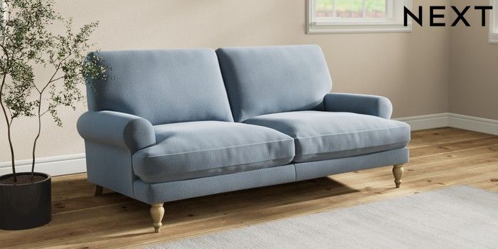 7.2.10 Erin Deep Relaxed Sit 3 Seater Small Sofa Relaxed Linen Look Mid Blue High Classic Turned - Light | Made Click here to use our website with more accessibility support, for example screen readers