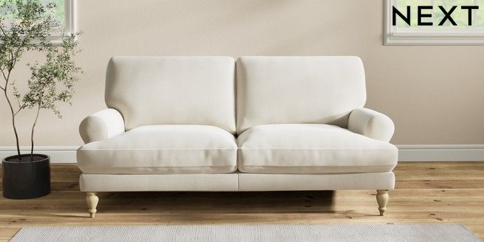 7.2.10 Erin Deep Relaxed Sit 3 Seater Small Sofa Relaxed Linen Look Oyster High Classic Turned - Light | Made Click here to use our website with more accessibility support, for example screen readers
