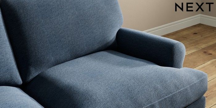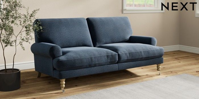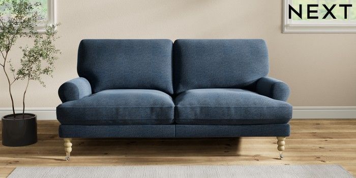 7.2.10 Erin Deep Relaxed Sit 3 Seater Small Sofa Ripple Chenille Dark Blue High Classic Turned Chrome Castor - Light | Made Click here to use our website with more accessibility support, for example screen readers