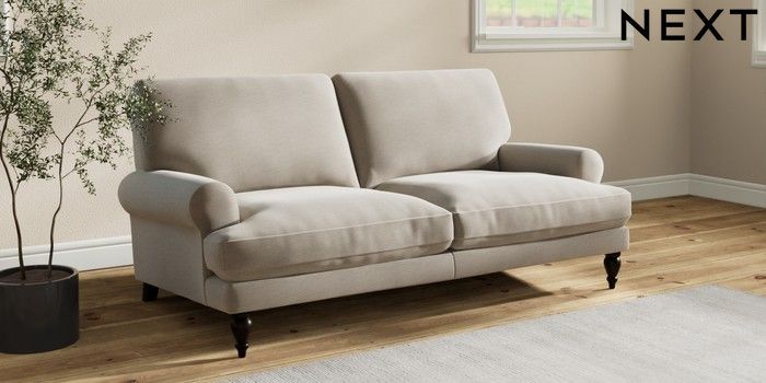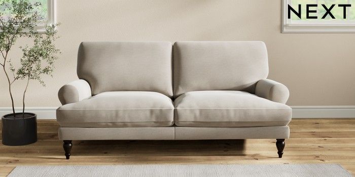 7.2.10 Erin Deep Relaxed Sit 3 Seater Small Sofa Ripple Chenille Light Natural High Classic Turned - Dark | Made Click here to use our website with more accessibility support, for example screen readers