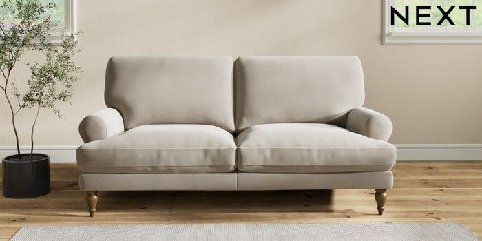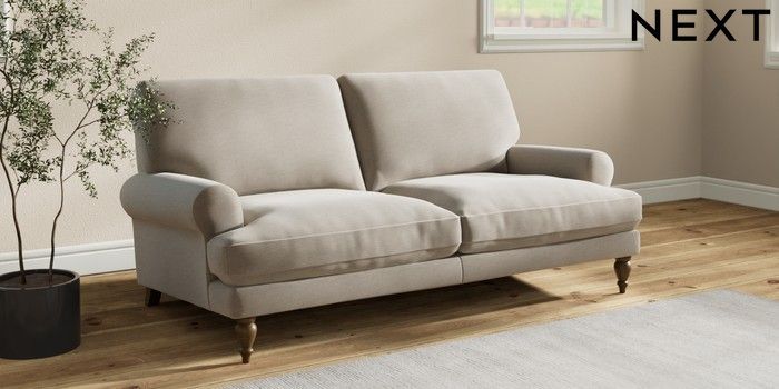 7.2.10 Erin Deep Relaxed Sit 3 Seater Small Sofa Ripple Chenille Light Natural High Classic Turned - Mid | Made Click here to use our website with more accessibility support, for example screen readers