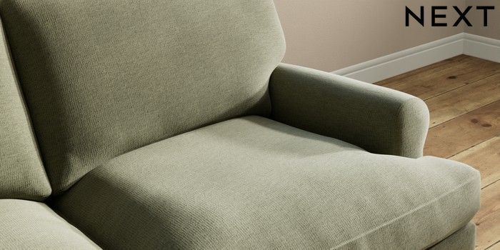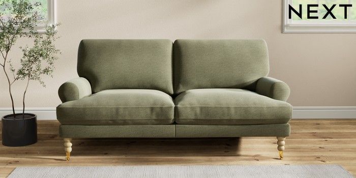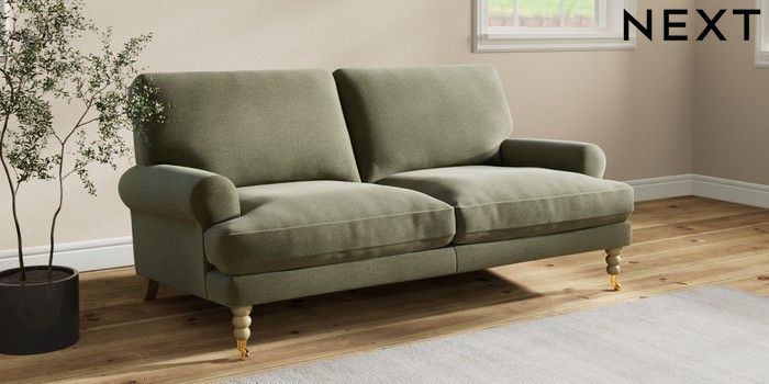 7.2.10 Erin Deep Relaxed Sit 3 Seater Small Sofa Ripple Chenille Mid Moss Green High Classic Turned Brass Castor - Light | Made Click here to use our website with more accessibility support, for example screen readers