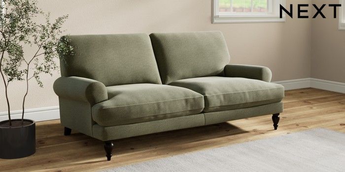 7.2.10 Erin Deep Relaxed Sit 3 Seater Small Sofa Ripple Chenille Mid Moss Green High Classic Turned - Dark | Made Click here to use our website with more accessibility support, for example screen readers