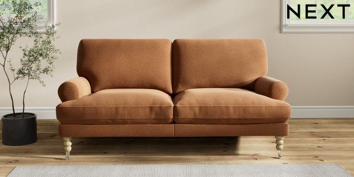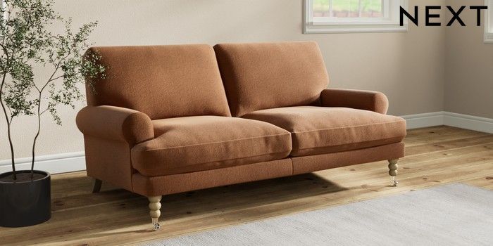 7.2.10 Erin Deep Relaxed Sit 3 Seater Small Sofa Ripple Chenille Mid Rust Brown High Classic Turned Chrome Castor - Light | Made Click here to use our website with more accessibility support, for example screen readers