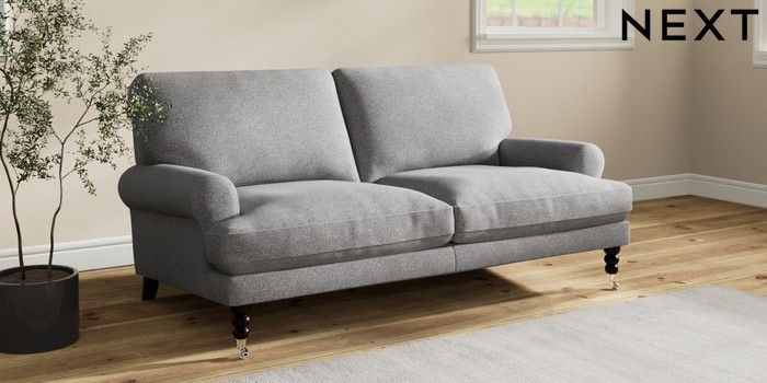 7.2.10 Erin Deep Relaxed Sit 3 Seater Small Sofa Studio Chenille Mid Grey High Classic Turned Chrome Castor - Dark | Made Click here to use our website with more accessibility support, for example screen readers
