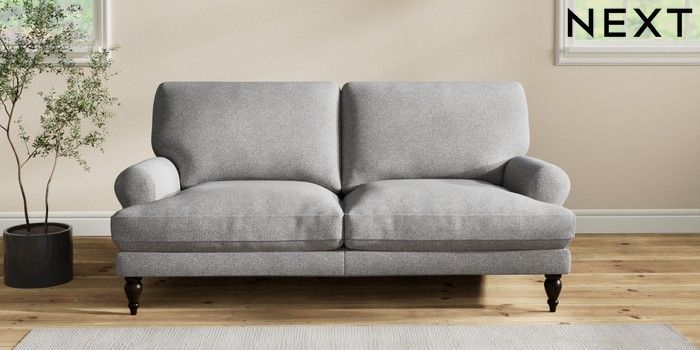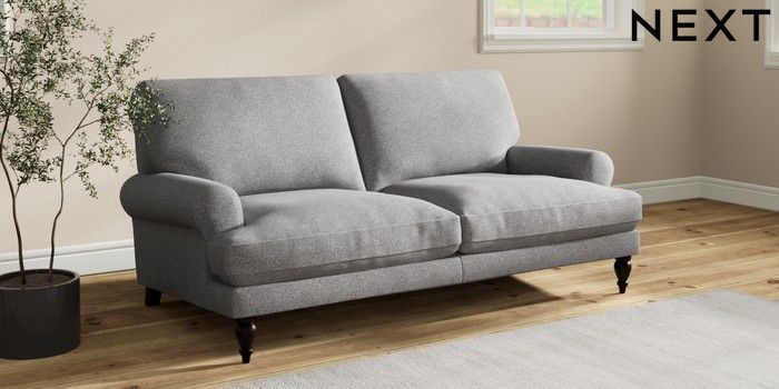 7.2.10 Erin Deep Relaxed Sit 3 Seater Small Sofa Studio Chenille Mid Grey High Classic Turned - Dark | Made Click here to use our website with more accessibility support, for example screen readers