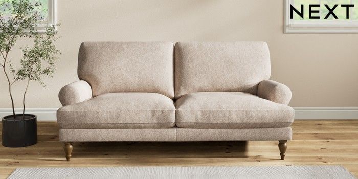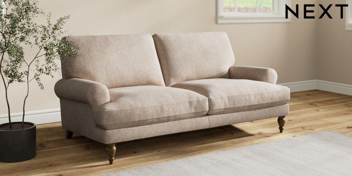 7.2.10 Erin Deep Relaxed Sit 3 Seater Small Sofa Tweedy Chenille Mid Natural High Classic Turned - Mid | Made Click here to use our website with more accessibility support, for example screen readers