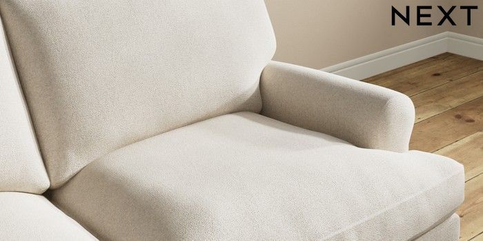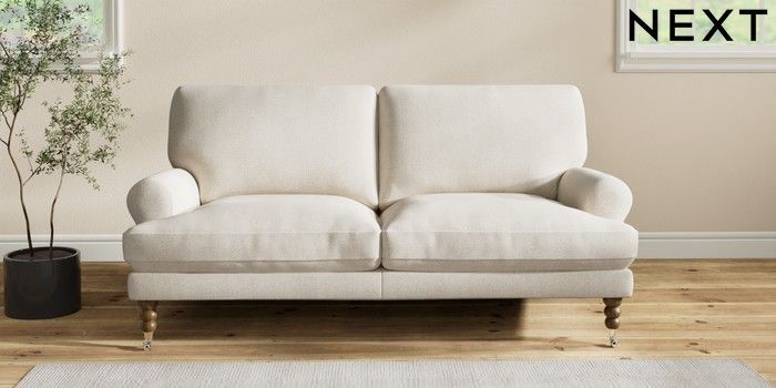 7.2.10 Erin Deep Relaxed Sit 3 Seater Small Sofa Tweedy Chenille Oyster High Classic Turned Chrome Castor - Mid | Made Click here to use our website with more accessibility support, for example screen readers