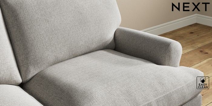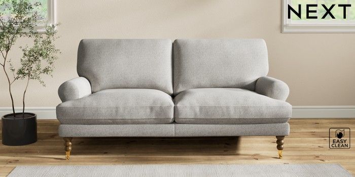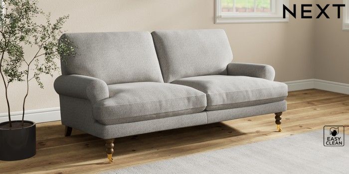 7.2.10 Erin Deep Relaxed Sit 3 Seater Small Sofa Woven Chenille Easy Clean Light Grey High Classic Turned Brass Castor - Mid | Made Click here to use our website with more accessibility support, for example screen readers