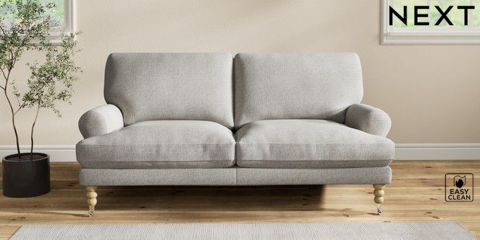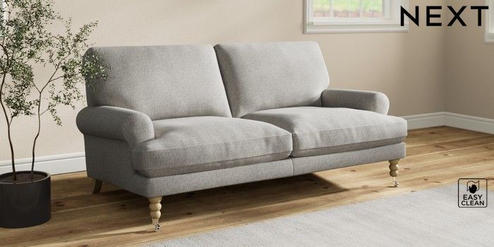 7.2.10 Erin Deep Relaxed Sit 3 Seater Small Sofa Woven Chenille Easy Clean Light Grey High Classic Turned Chrome Castor - Light | Made Click here to use our website with more accessibility support, for example screen readers