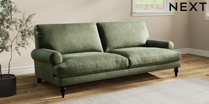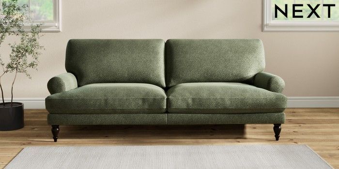 7.2.10 Erin Deep Relaxed Sit 3 Seater Sofa Boucle Chenille Dark Moss Green High Classic Turned - Dark | Made Click here to use our website with more accessibility support, for example screen readers