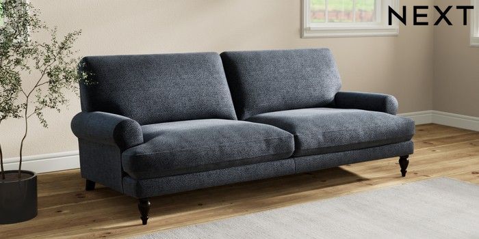 7.2.10 Erin Deep Relaxed Sit 3 Seater Sofa Boucle Chenille Dark Slate Blue High Classic Turned - Dark | Made Click here to use our website with more accessibility support, for example screen readers
