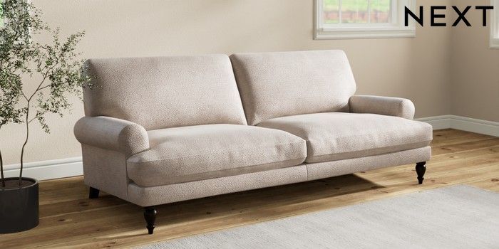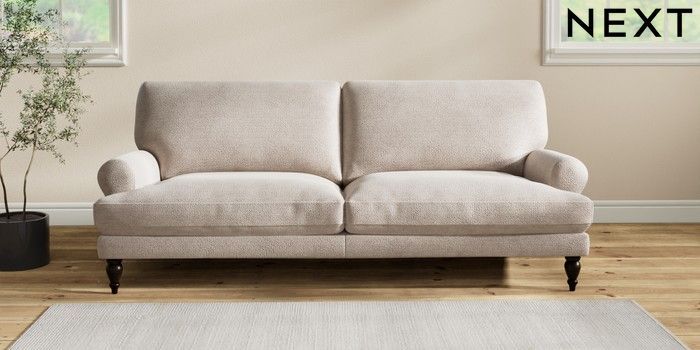 7.2.10 Erin Deep Relaxed Sit 3 Seater Sofa Boucle Chenille Light Natural High Classic Turned - Dark | Made Click here to use our website with more accessibility support, for example screen readers