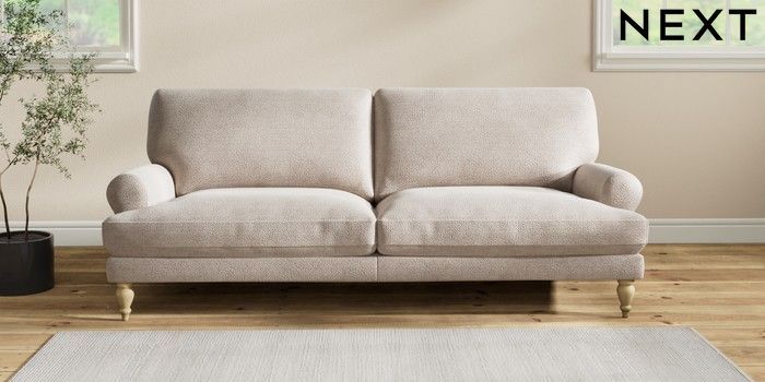 7.2.10 Erin Deep Relaxed Sit 3 Seater Sofa Boucle Chenille Light Natural High Classic Turned - Light | Made Click here to use our website with more accessibility support, for example screen readers