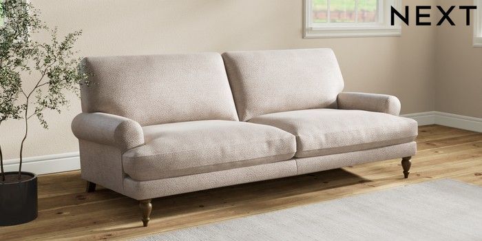 7.2.10 Erin Deep Relaxed Sit 3 Seater Sofa Boucle Chenille Light Natural High Classic Turned - Mid | Made Click here to use our website with more accessibility support, for example screen readers